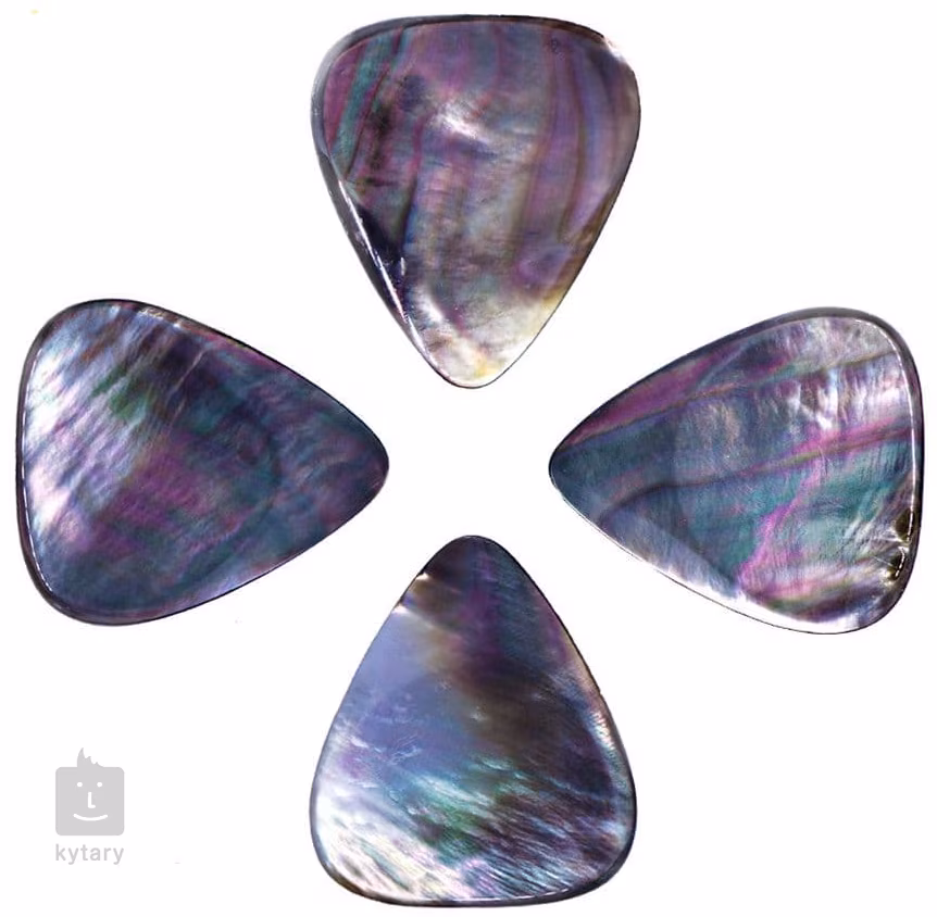 Négy darabos készlet fekete gyöngyházfényű pengetőből.