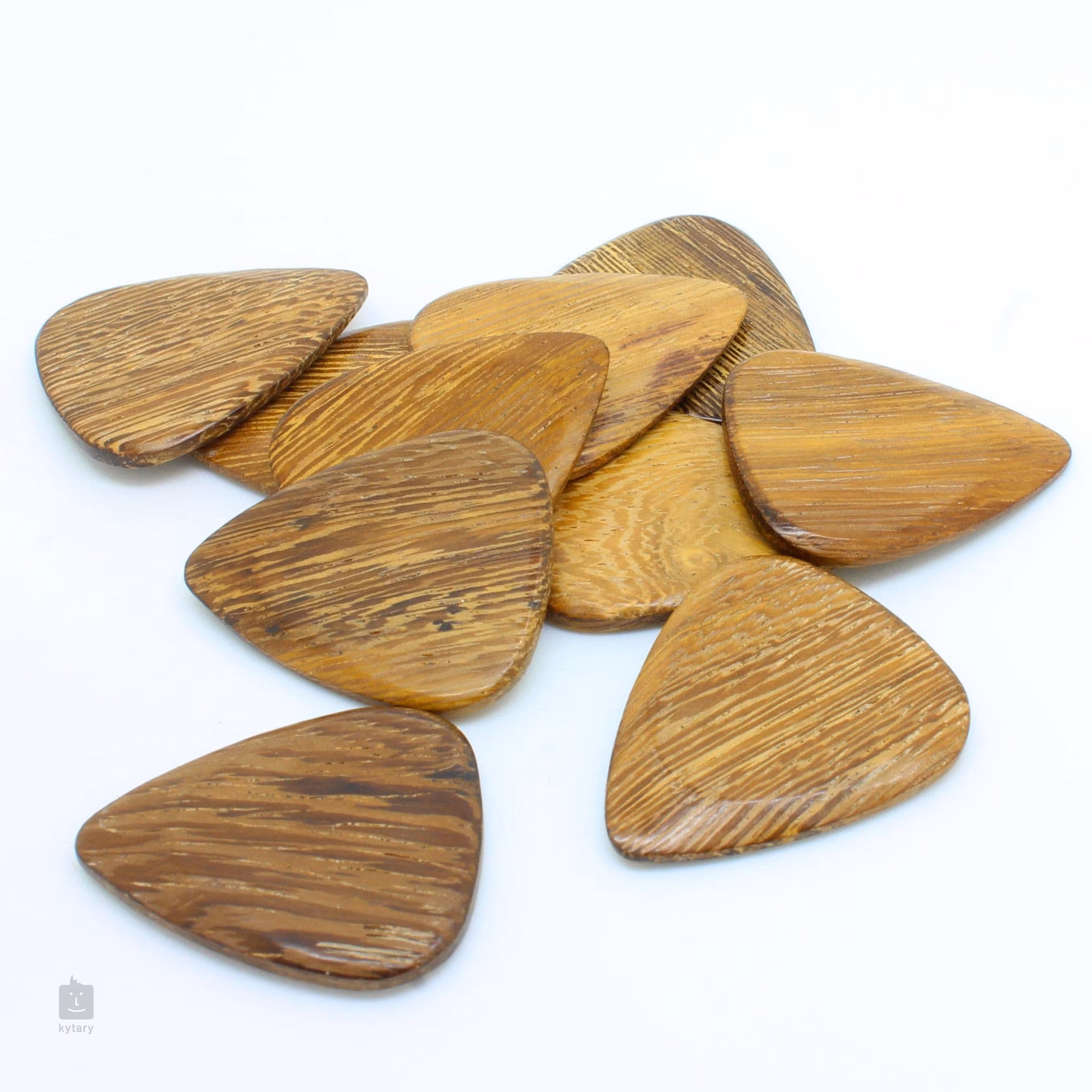 Akár ajándékot keres egy lelkes gitárosnak, akár csak a tökéletes hangzást keresi, és szeretné kipróbálni a szokatlan anyagokból készült pengetőket, a Timber Tonesnál megtalálja, amire szüksége van. Ez a készlet négy pengetőt tartalmaz, amelyek thai kassziából készültek, egy közepesen kemény fából, amely kiegyensúlyozott, frekvenciasemleges hangzást eredményez. A pengetők vastagsága 2,4 mm, amely a hegye felé 0,7 mm-re csökken. Kézzel vannak kivágva és lakkozva.