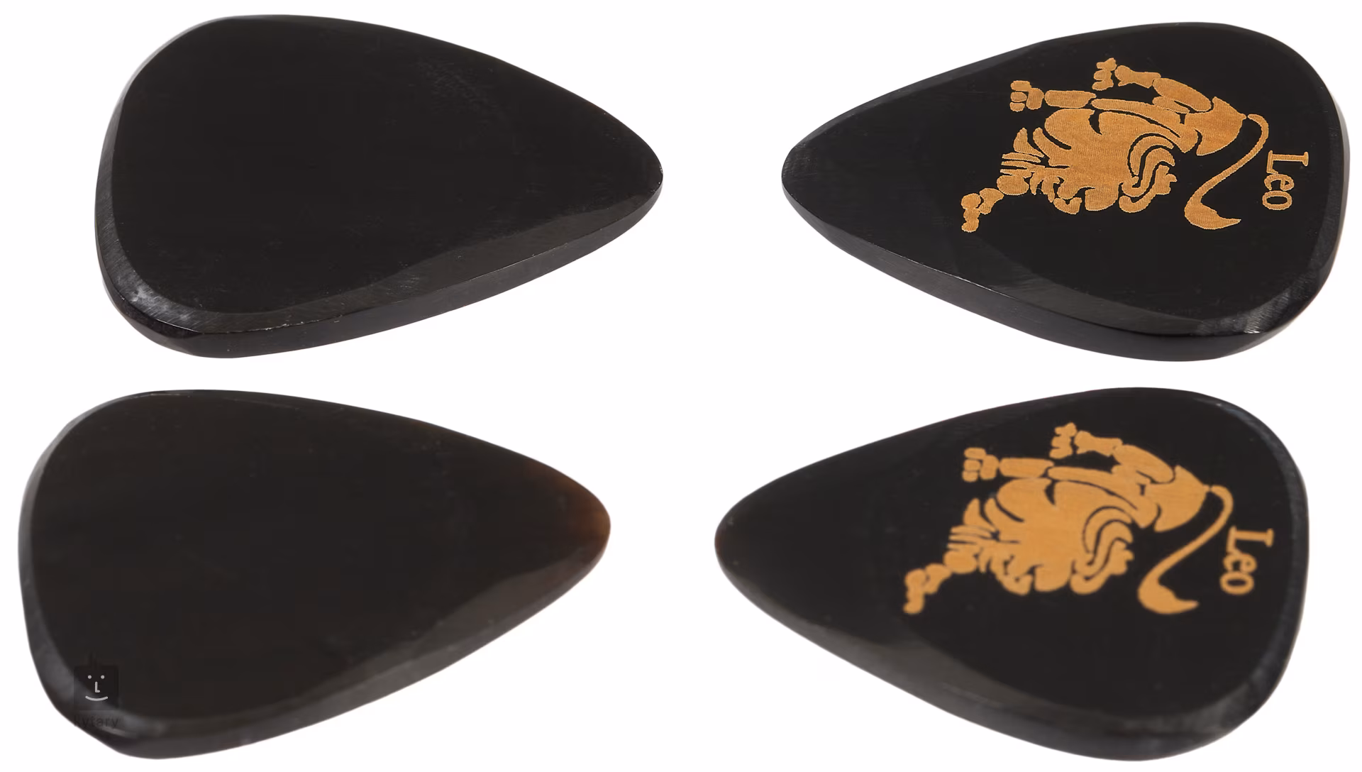 Akár ajándékot keres egy lelkes, asztrológia iránt rajongó gitárosnak, akár csak a tökéletes hangzást keresi, és szeretné kipróbálni a szokatlan anyagokból készült pengetőket, a Timber Tonesnál biztosan megtalálja, amire szüksége van. Ez az egyedi csillagjegy témájú pengetőkészlet egy vízibivaly szarvából készült pengetőket tartalmaz. Vastagságuk 2,5 mm, a hegyük felé 0,7 mm-re keskenyednek, és megszólaltatásuk során meleg, kerek hangot adnak. Elektromos és akusztikus gitárhoz egyaránt alkalmasak.