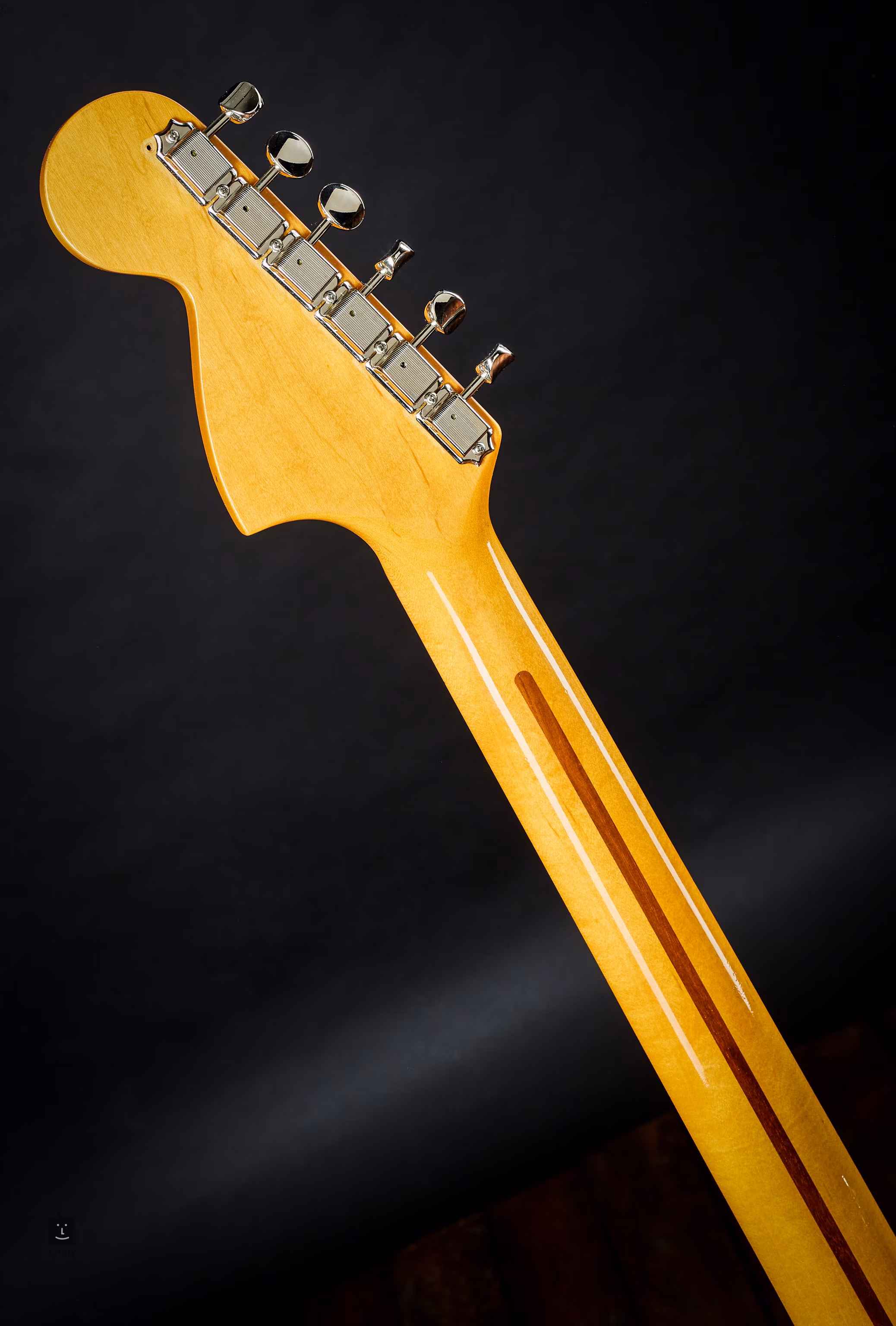 Per Stratocaster Tokai. A 70-es éveket reprodukáló modell - nagy fejidom és háromcsavaros nyakcsukló. Japánban készült 1983 körül.