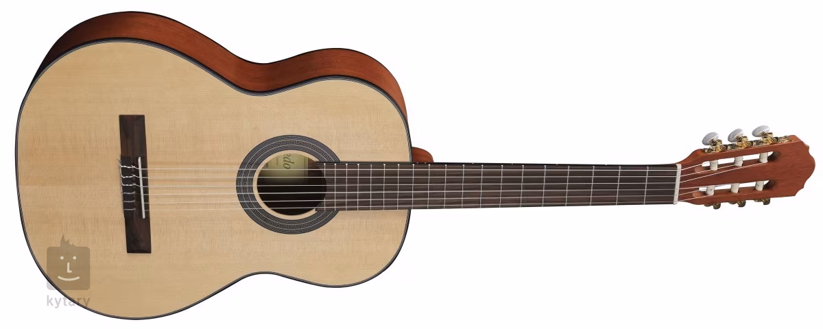 A Toledo Estudio Solida 44AS klasszikus gitár egy megfizethető árú, félig masszív felépítésű hangszer, amely kezdők és tapasztaltabb játékosok számára egyaránt alkalmas. Tömör lucfenyő hangfal, laminált mahagóni hát- és oldallemez, okoumé nyak, valamint rózsafa fogólap és fogólap. A húrokat klasszikus nyitott hangolókarokba szerelték, gyöngyházutánzatú gyöngyházszegekkel. A stílusos kivitelezést a fekete és fehér vonalakkal kiegészített fekete peremkötés, a díszes rozetta és a szatén fényezés (nyitott pórusú szatén natúr) emeli ki.