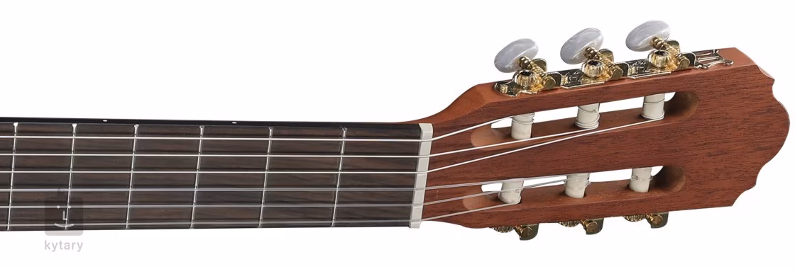 A Toledo Estudio Solida 44CS klasszikus gitár egy megfizethető árú, félig masszív felépítésű hangszer, amely kezdők és tapasztaltabb játékosok számára egyaránt alkalmas. Tömör cédrus hangfal, laminált mahagóni hát- és oldallemez, okoumé nyak, valamint rózsafa fogólap és fogólap jellemzi. A húrokat klasszikus nyitott hangolókarokba szerelték, gyöngyházutánzatú gyöngyházszegekkel. A stílusos kivitelezést a fekete és fehér vonalakkal kiegészített fekete peremkötés, a díszes rozetta és a szatén fényezés (nyitott pórusú szatén natúr) emeli ki.