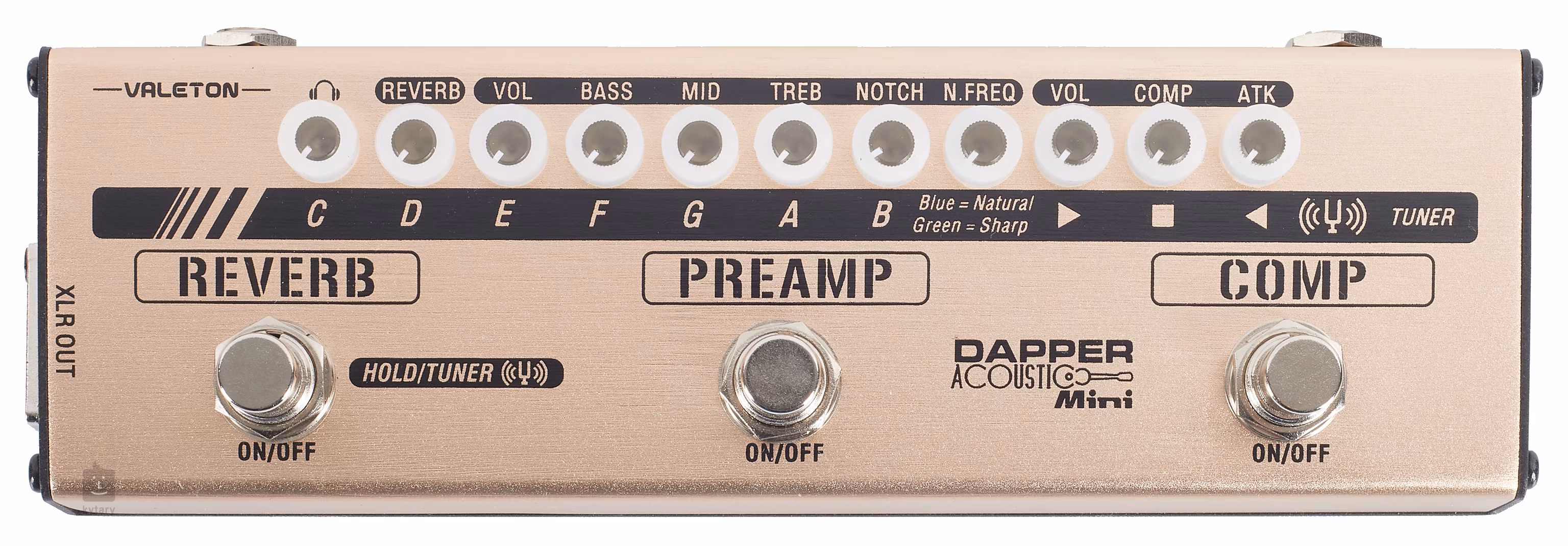 A Dapper Acoustic Mini egy kisméretű, padlóra állítható akusztikus gitár multi-effekt, intuitív kezelőfelülettel és három különálló effekt szekcióval - egy kompresszor állítható tömörítési sebességgel és intenzitással, egy előerősítő háromsávos EQ-val és a nem kívánt visszacsatolási hatások elleni küzdelemre szolgáló szabályozókkal, valamint egy egygombos Reverb effekt szekcióval. A padlóeffekt integrált hangolót, szimmetrikus XLR-kimenetet a jel keverőpultra vagy hangkártyára történő kimenetéhez, illetve fejhallgató-kimenetet is kínál saját kimeneti hangerőszabályzóval és fülke-szimulációval. A multieffekt áramellátásához egy 9V-os adaptert használunk.