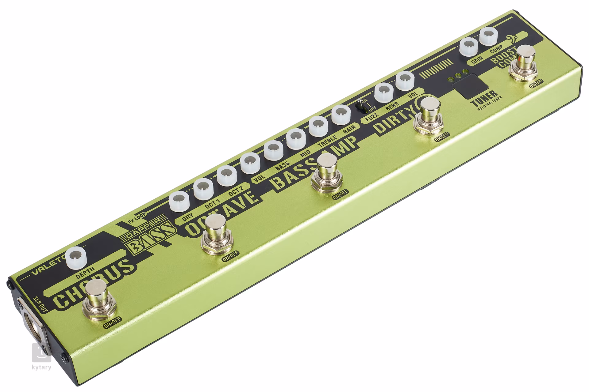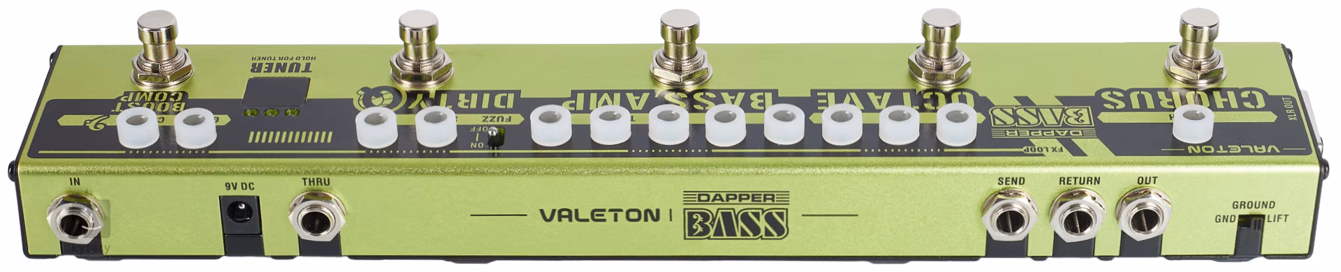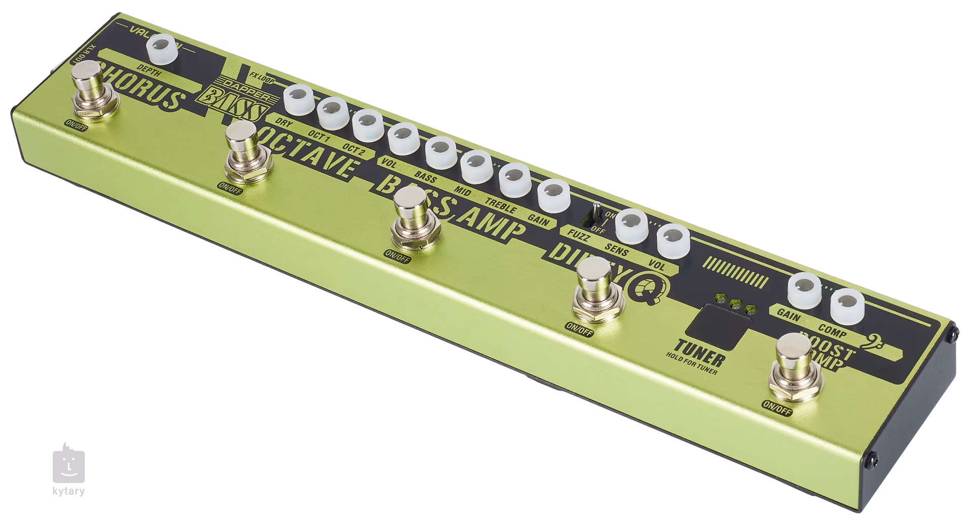 A Dapper Bass egy padlóra állítható elektromos basszusgitár multi-effekt, intuitív felhasználói felülettel és öt különálló effekt szekcióval. A műsort egy rúgásindító booster és kompressziós szekció nyitja, míg a Dirty Q burkológörbe szűrővel és kapcsolható fuzz-szal egy kis funky groove-ot ad a hangzáshoz, amit aztán a Bass Amp előerősítő szekcióban egy háromsávos EQ-val tetszés szerint állíthatsz be. A másik két effekt szekció egy monofonikus Octave-ot kínál, amely egy és két oktávval lejjebb lévő vonalak harmonizálására is képes, valamint egy gazdag Chorus effekt hangzást.