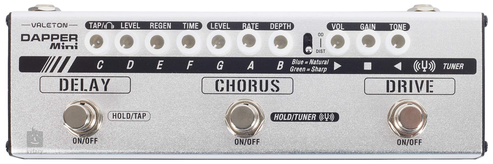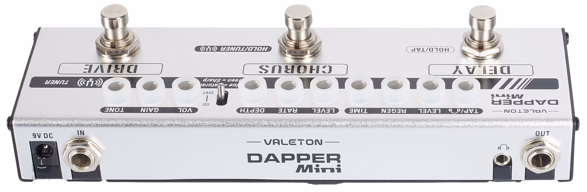 A Dapper Mini egy kis, padlóra állítható elektromos gitár multi-effekt intuitív kezelőfelülettel és három különálló effekt szekcióval - Overdrive a rockosabb Overdrive és a metálos Distortion modok közötti váltás lehetőségével, valamint Chorus és Delay effekt szekciókkal. Mindegyik szekcióban standard vezérlők állnak rendelkezésre a hangzás vagy az effektmoduláció karakterének beállításához. A Floor Multieffect integrált hangolót, tap tempo funkciót és fejhallgató kimenetet is kínál saját hangerőszabályzóval és fülke-szimulációval a zavartalan játékhoz (vonal kimenetként is használható). A multieffekt áramellátásához egy 9V-os adaptert használunk.