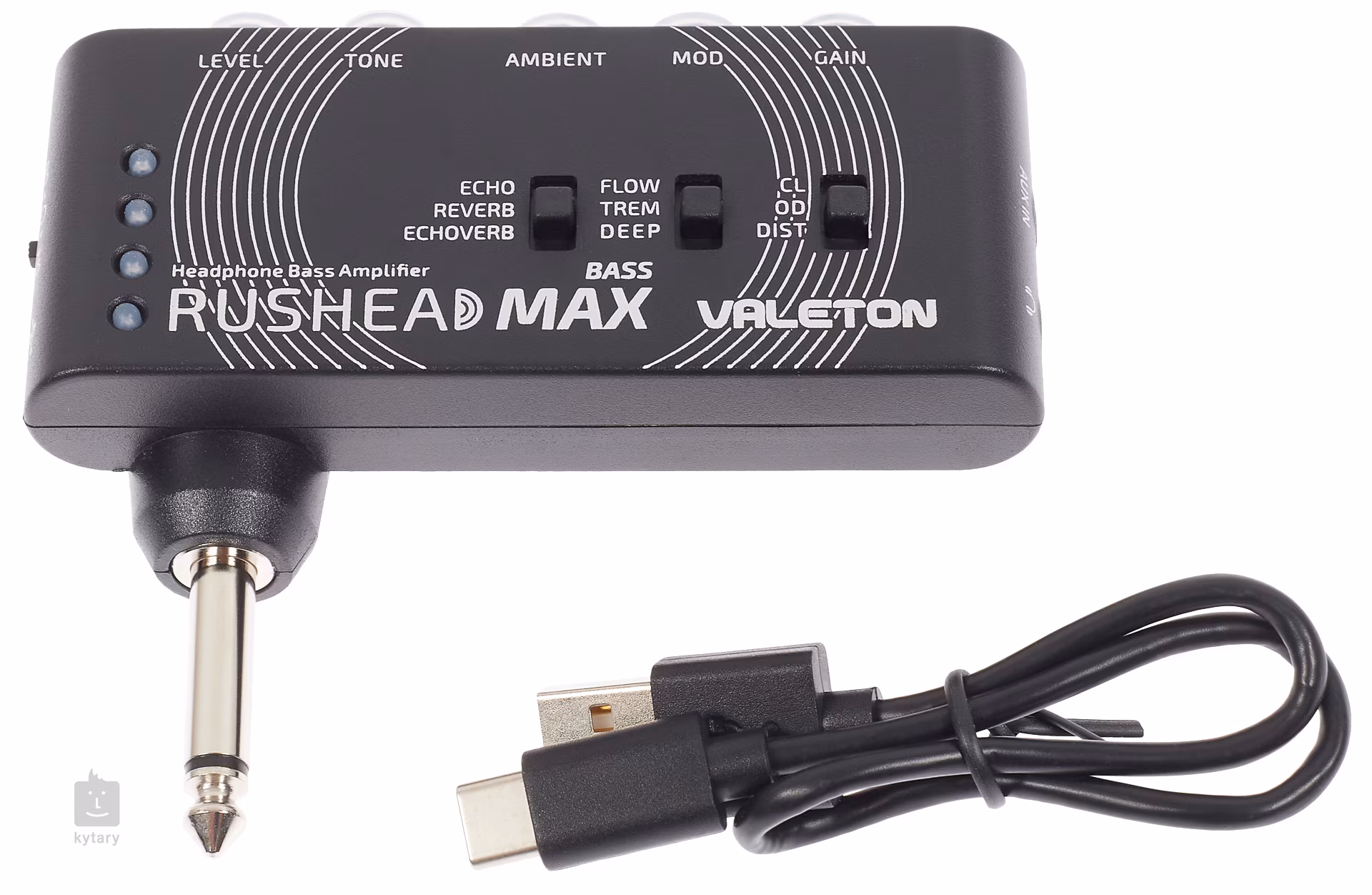 A Rushead Bass Max a praktikus basszusgitár fejhallgató-erősítő továbbfejlesztett modellje, újratölthető USB Li-ion akkumulátorral és akár öt órányi üzemidővel egyetlen feltöltéssel. Ez a modell a hangzásbeli lehetőségek széles skáláját kínálja - a gyönyörűen tiszta hangzástól a finoman torzított túlhajtáson át a masszív torzításig -, amelyet öt potenciométerrel lehet részletesen szabályozni. Két effektegység is rendelkezésre áll, amelyek olyan effekteket kínálnak, mint a kórus, a tremolo, a flanger, a reverb és a visszhang. A fejhallgató kimenet mellett egy Aux bemenetet is találsz az erősítőn, így zavartalanul jammelhetsz kedvenc számaidra. Egy USB tápkábelt mellékelünk.