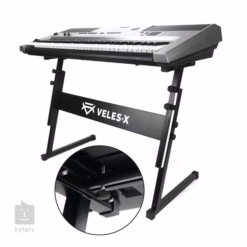 A Veles-X Z-Keyboard állvány egy stabil, állítható magasságú "Z" állvány, amelyet billentyűs hangszerekhez terveztek. A biztonsági csavarrendszernek köszönhetően biztos lehet benne, hogy nem ejti le véletlenül a hangszerét (a rendszer kompatibilis a Yamaha PSR-E vagy egyes Casio modellekkel). A stabilitást és a karcolások elleni védelmet a szerkezet mindkét oldalán található gumírozott végek biztosítják.
