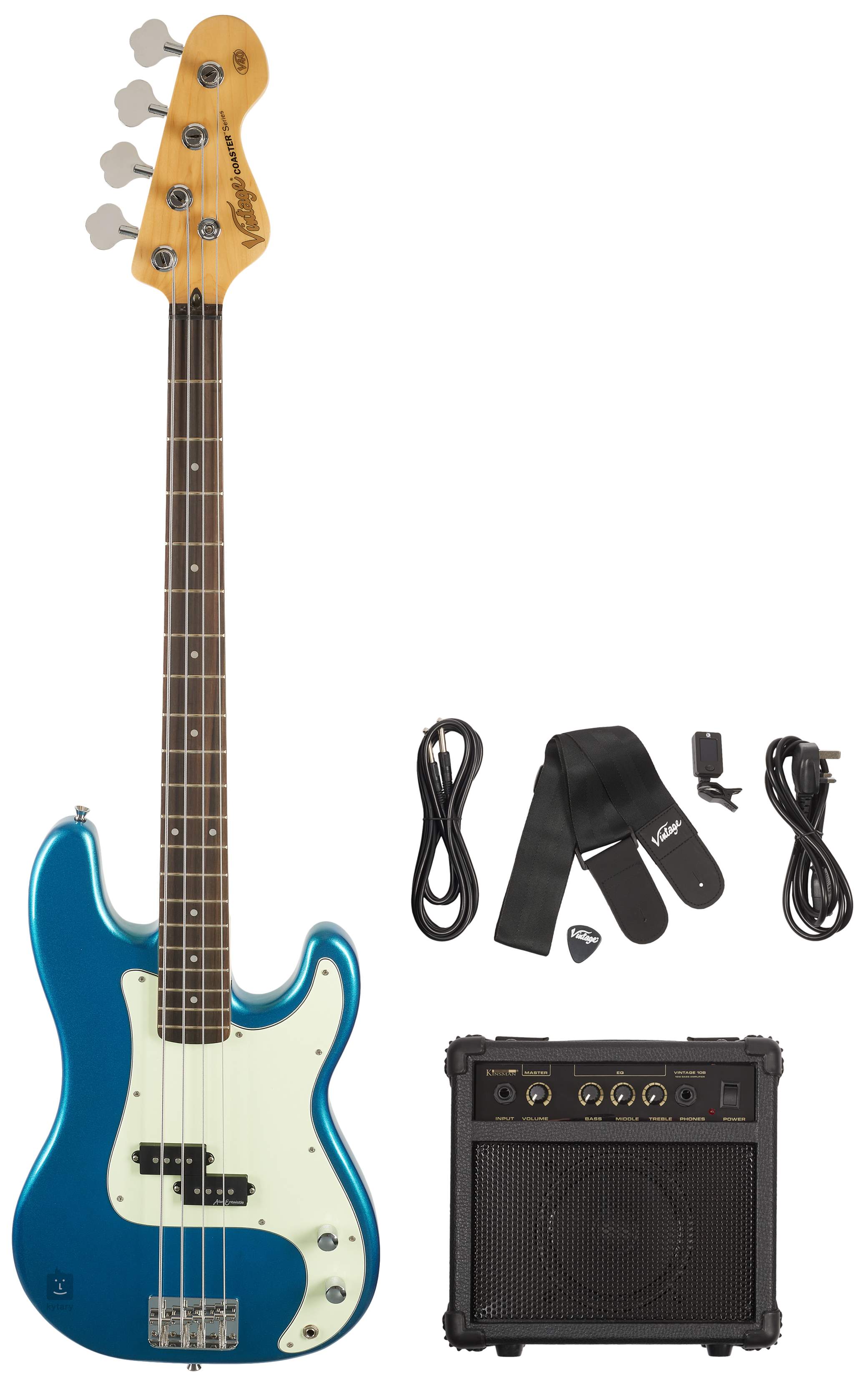 A Vintage Coaster V40 ideális első "komoly" basszusgitárként a rockrajongók számára. Ezt a csomagot olyan játékosok számára tervezték, akik mindent szeretnének, amire szükségük van a játékhoz. A Vintage Coaster Series V40 basszusgitár csomag a basszusgitáron kívül tartalmaz egy pengetőt, szíjat, húrkészletet, tokot, hangszerkábelt, klipszes hangolót és egy 10 W-os Kinsman erősítőt Master Volume hangerővel és 3 sávos EQ-val.
