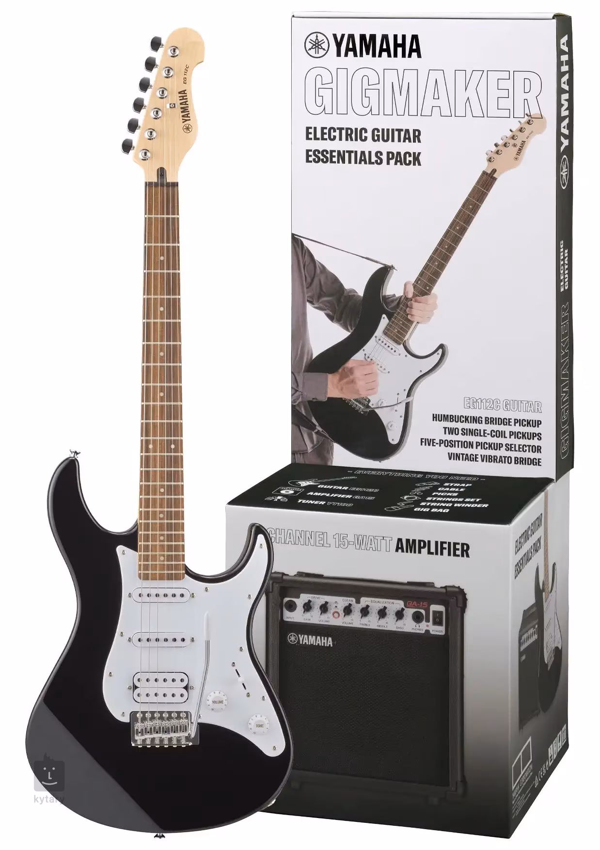 A Yamaha EG112 Pack BK gitárkészlet mindent kínál, amire a kezdő elektromos gitárosoknak szükségük lehet. A készlet tartalmaz egy Yamaha Pacifica elektromos gitárt Super ST kivitelben, egy GA-15 kétcsatornás tranzisztoros gitárkombót 15 wattos teljesítménnyel és fejhallgató kimenettel, egy YT100 hangolót, gigatáskát, gitárszíjat, gitárkábelt, pengetőt, húrozó pengetőt és egy extra készlet húrokat.