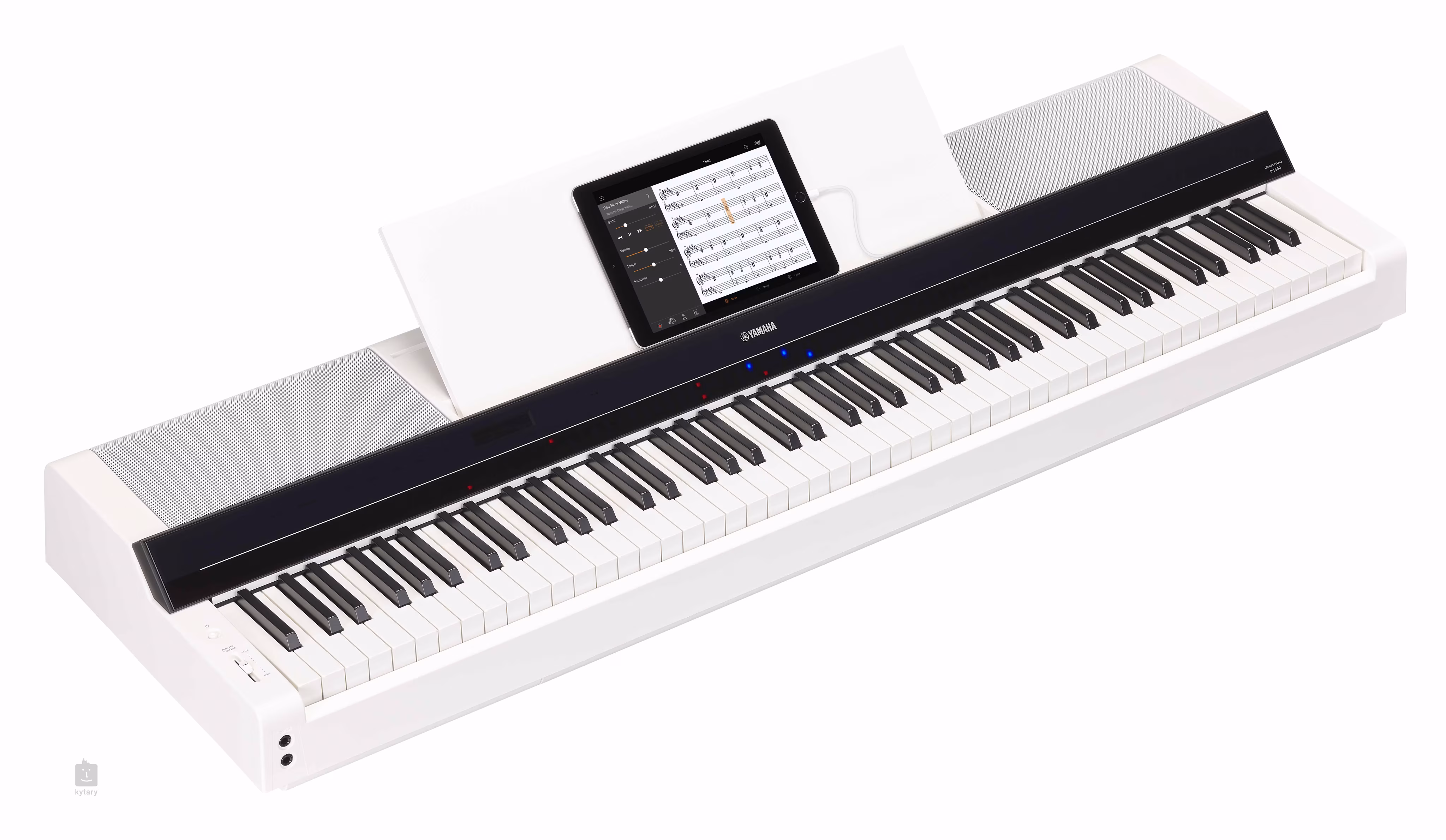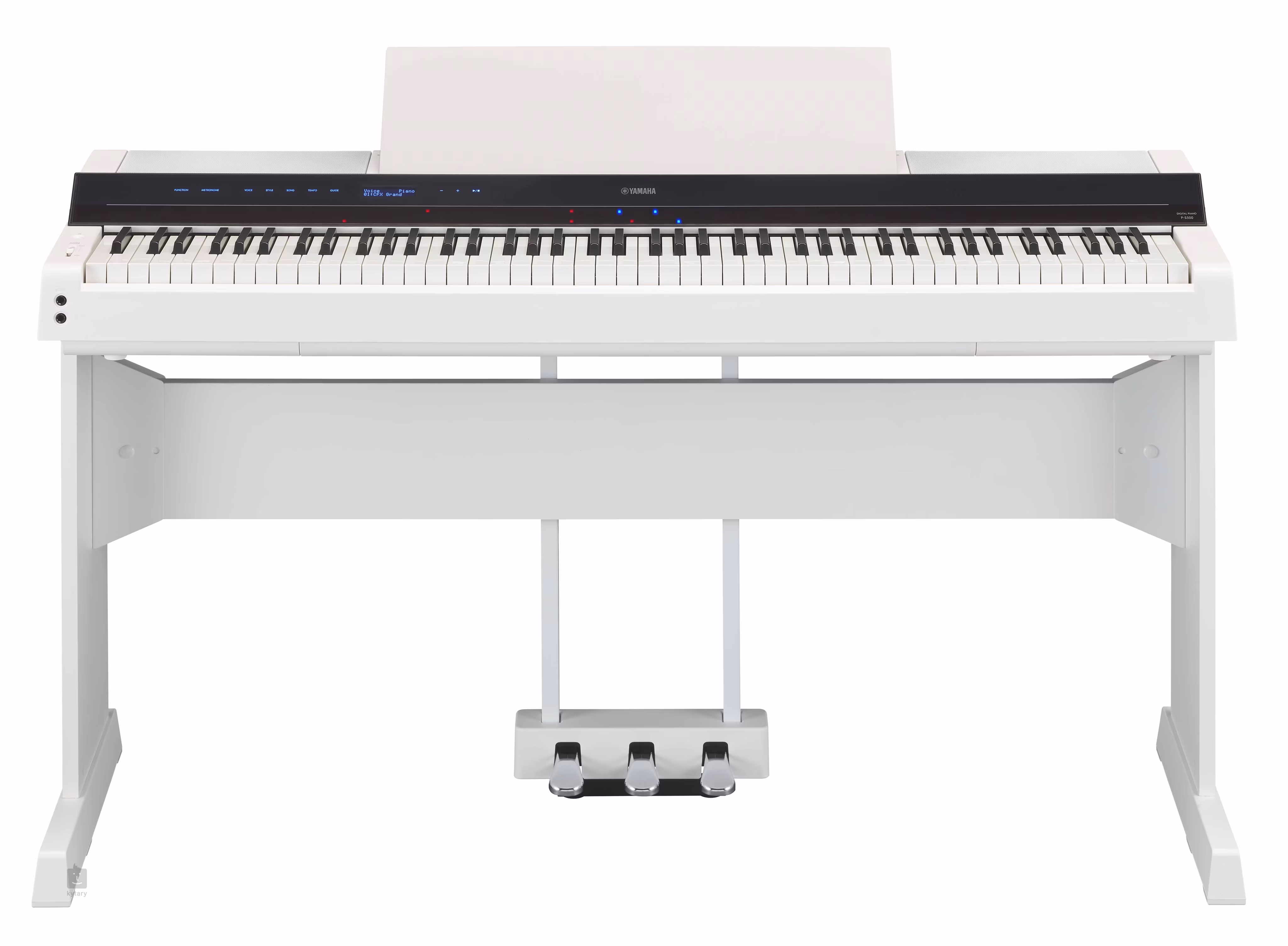 A csomag tartalma és ajánlottkiegészítők A zongora mellett a csomagban található egy stílusos kottatartó, amely akár egy nagy táblagépet is megtart, továbbá egy sustain pedál, USB-kábelek és tápegység. Ha hagyományos hárompedálos vezérlést szeretne, javasoljuk a Yamaha L-300 állvány és az LP-1 pedálállvány, vagy az FC35 különálló hárompedálos pedál megvásárlását. Az opcionális kiegészítők között megtalálható még az MT-BT01 külső MIDI átalakító vagy az UD-WL01 USB WiFI LAN átalakító.
