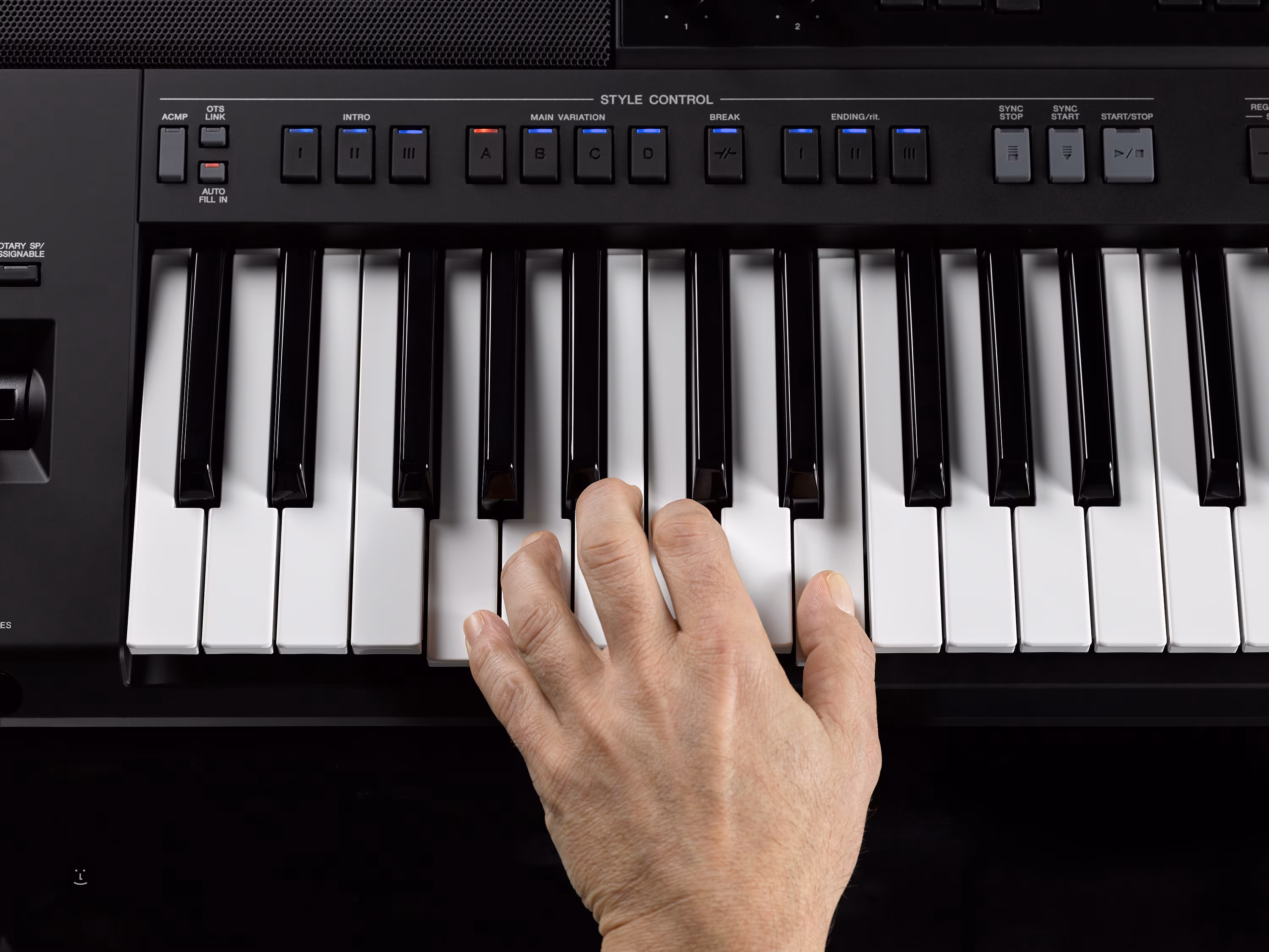 Két hozzárendelhető vezérlő, egy modulációs kerék és két lábkapcsoló bemenet található. Így minden fontos paramétert teljesen ellenőrzés alatt tarthat, amikor élőben játszik. Van egy új négygombos panel is a Song Playback funkció vezérlésére, ahol szabadon ugrálhat egy dal részei között, míg a RESET és a TAP TEMPO gombokkal a helyzethez igazíthatja a háttértárat. Egy másik funkció a Chord Looper, amely lehetővé teszi egy háttérsáv rögzítését, amelyre énekelhet vagy billentyűs szólót játszhat.