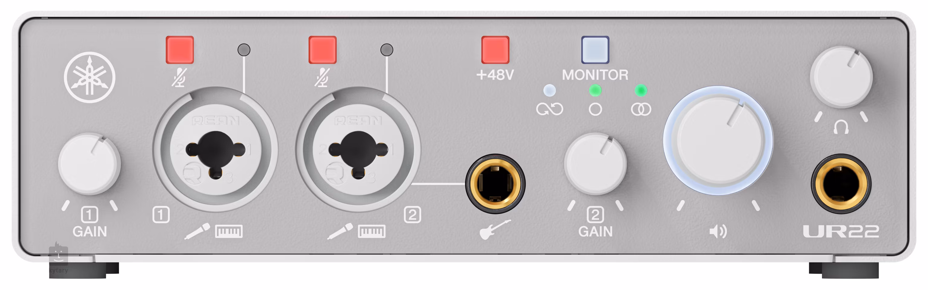 Az interfész két csúcskategóriás Yamaha UR mikrofon-előerősítővel rendelkezik, +48 V-os fantom táplálással, amelyek kiváló dinamikát és tiszta felvételt biztosítanak. A két kombinált mikrofon/vonal bemenet Mute gombbal lehetővé teszi a mikrofonok, hangszerek vagy külső eszközök rugalmas csatlakoztatását, míg a Hi-Z bemenet elektromos gitár vagy basszusgitár közvetlen csatlakoztatására szolgál, DI doboz nélkül.