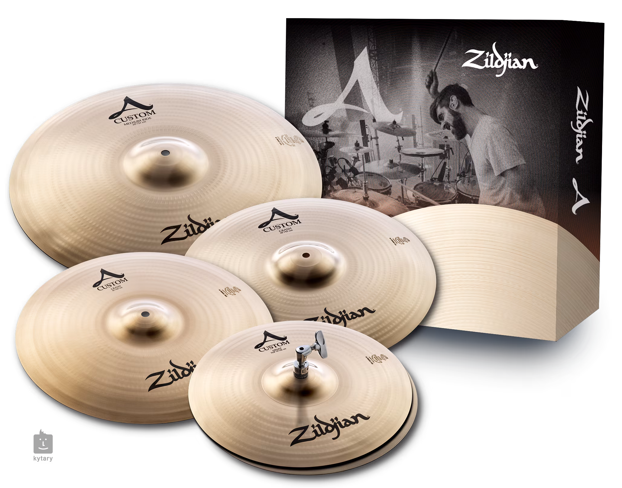 Ez a csomag egy A Custom cintányérkészletet tartalmaz: 20" A Custom Ride, 14" A Custom HiHat, 16" A Custom Crash és 18" A Custom Crash.