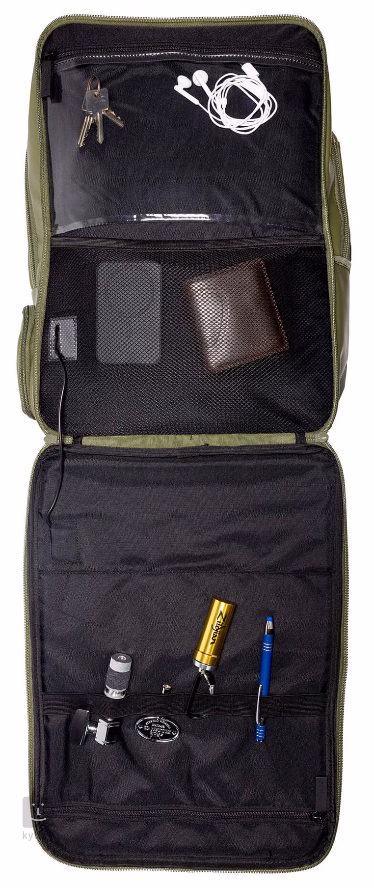 A Zildjian Touring hátizsákját úgy tervezték, hogy megfeleljen az úton lévő zenészek igényeinek, legyen szó turnézásról vagy a napi ingázásról. Ez a hátizsák maximális védelmet és kényelmet nyújt masszív felépítésével és átgondolt részleteivel. Méretei kissé túlméretezettek, hogy valóban mindent elférjen benne, amire szükséged van, de mérete még így is ideális kézipoggyászként való használatra repülőgépen, és elfér az autó ülései alatt. Megerősített, párnázott rekeszekkel is rendelkezik a felszerelés biztonságos tárolásához.