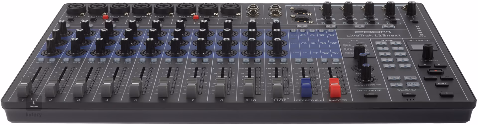 A Zoom LiveTrak L12next egy modern digitális keverőpult felvevővel, amely ötvözi a digitális technológia előnyeit az analóg vezérléssel. Élő fellépésekhez, próbatermekhez, otthoni és projektstúdiókhoz, zenekarokhoz, podcastokhoz és streaminghez lett tervezve. Gyors, intuitív munkavégzést kínál, anélkül, hogy hosszadalmas menükben kellene böngészni, és teljes ellenőrzést biztosít a keverés felett bármilyen helyzetben.
