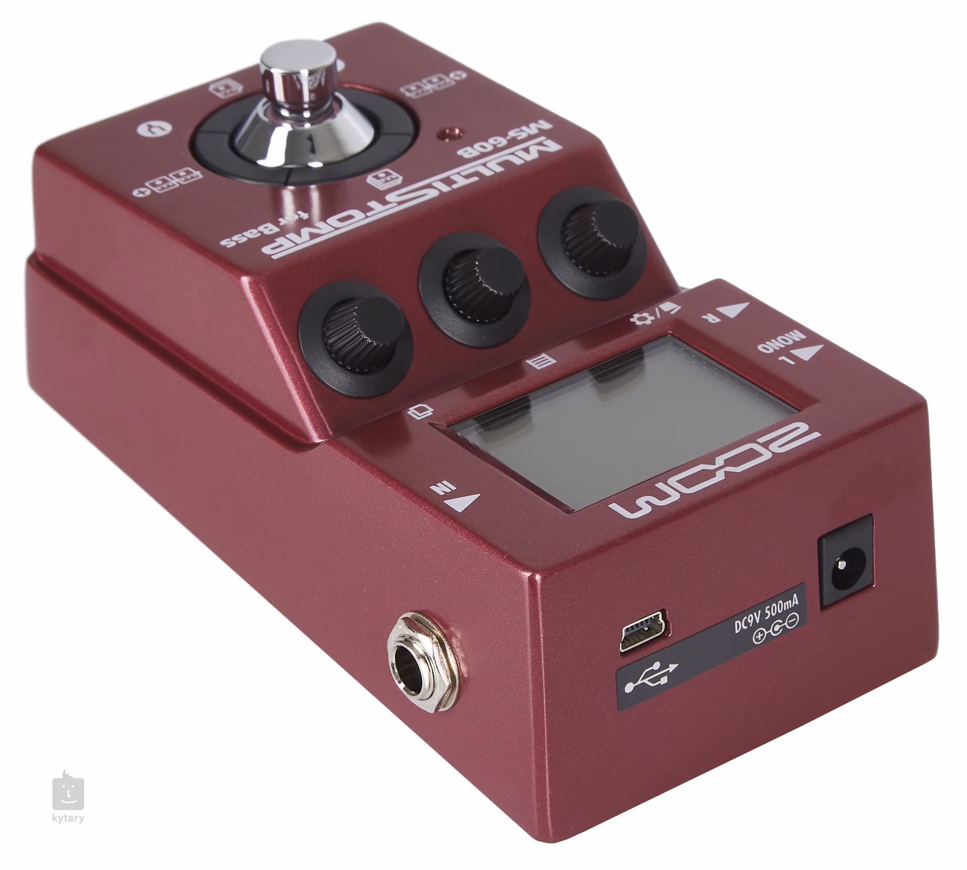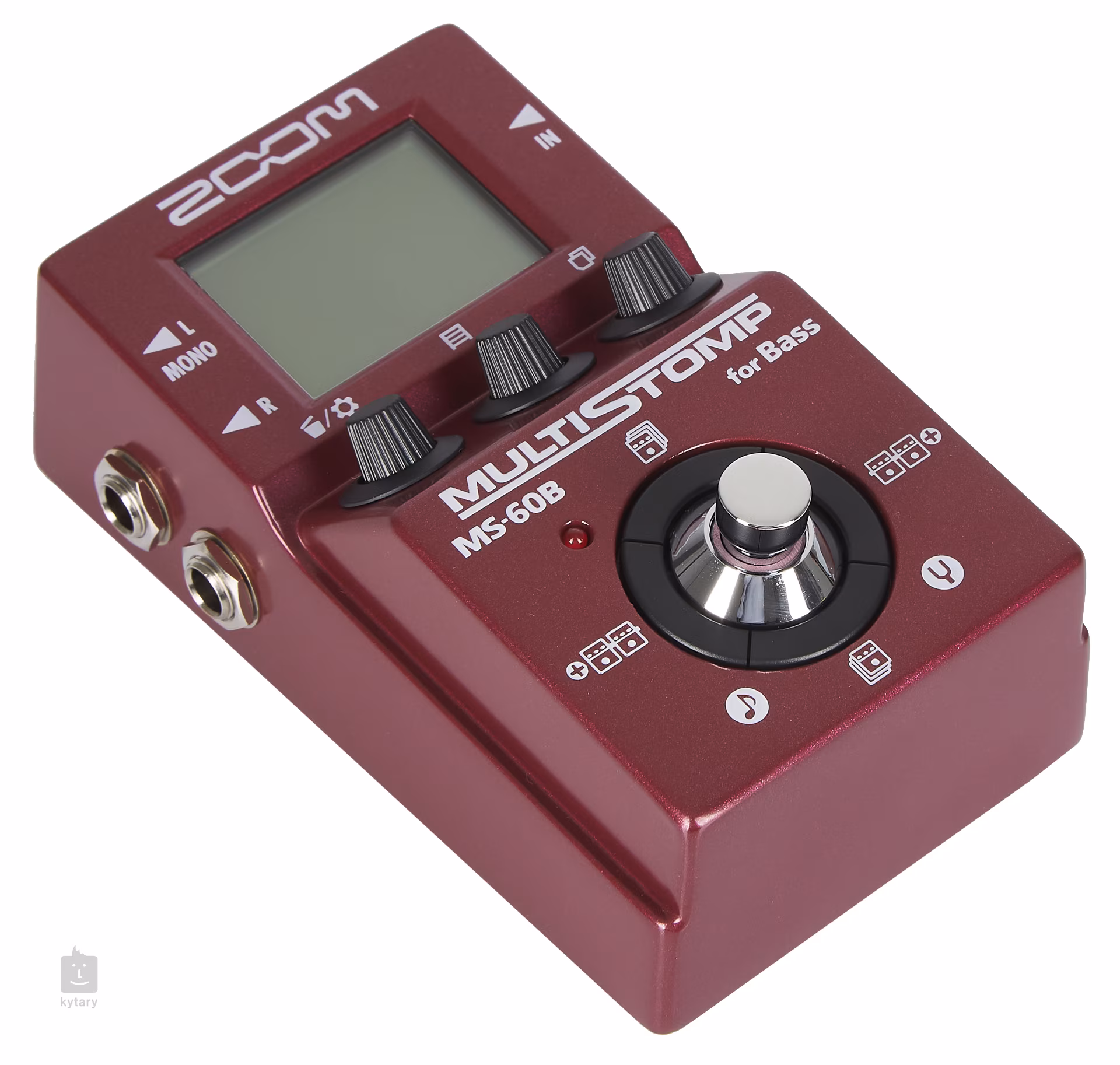 A Zoom MS-60B MultiStomp egy kompakt pedáltestbe csomagolt, teljes funkcionalitású basszus multi-effekt. Összesen 58 effektet kínál (dinamika/szűrő, Overdrive/torzítás, moduláció/különleges effektek, Delay/Reverb), köztük hat beépített szimulációt ismert márkák (Ampeg SVT, Fender Bassman, Hartke HA3500, 360, Aguilart DB750, Markbass Little Mark III) virtuális szekrényekkel párosítva. Négy effekt egyszerre használható, és a jelláncban szabadon beállítható a sorrendjük. Természetesen minden beállítás tárolható presetekben - 50 memória áll rendelkezésre a felhasználói presetek/patchek és 30 már előre beállított preset számára.